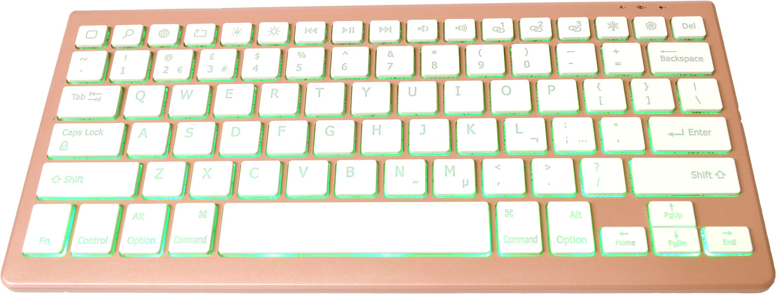 Bluetooth Backlit Rechargeable Keyboard Rose Gold UK Layout Compact PC Tablet