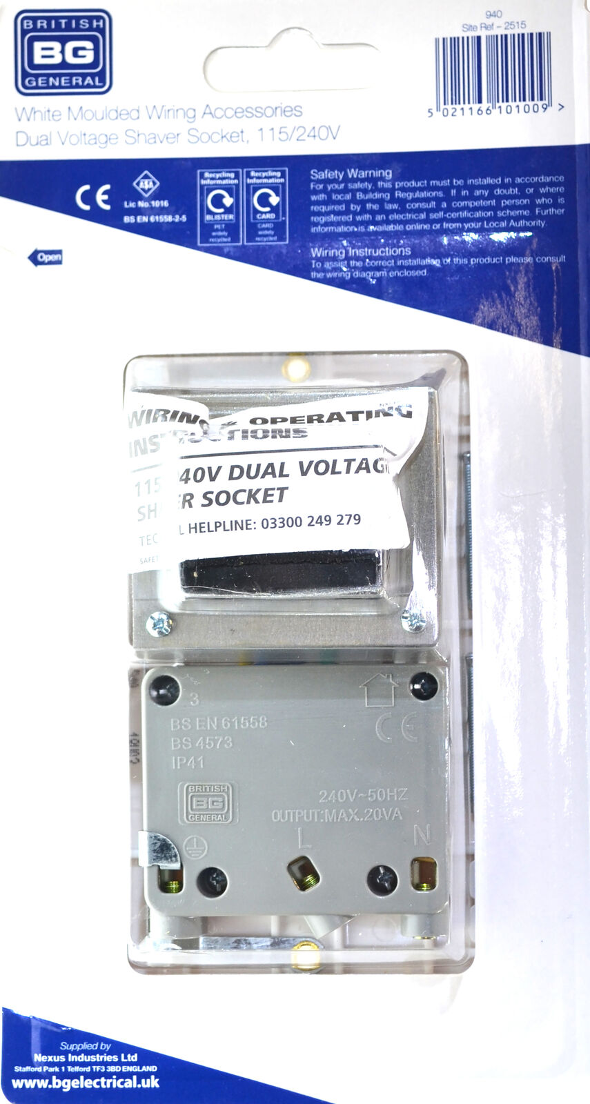 PART OF THE NEXUS MOULDED RANGE: The 115- and 230- dual voltage shaver socket, is perfect to be used with electric shavers and electric toothbrushes