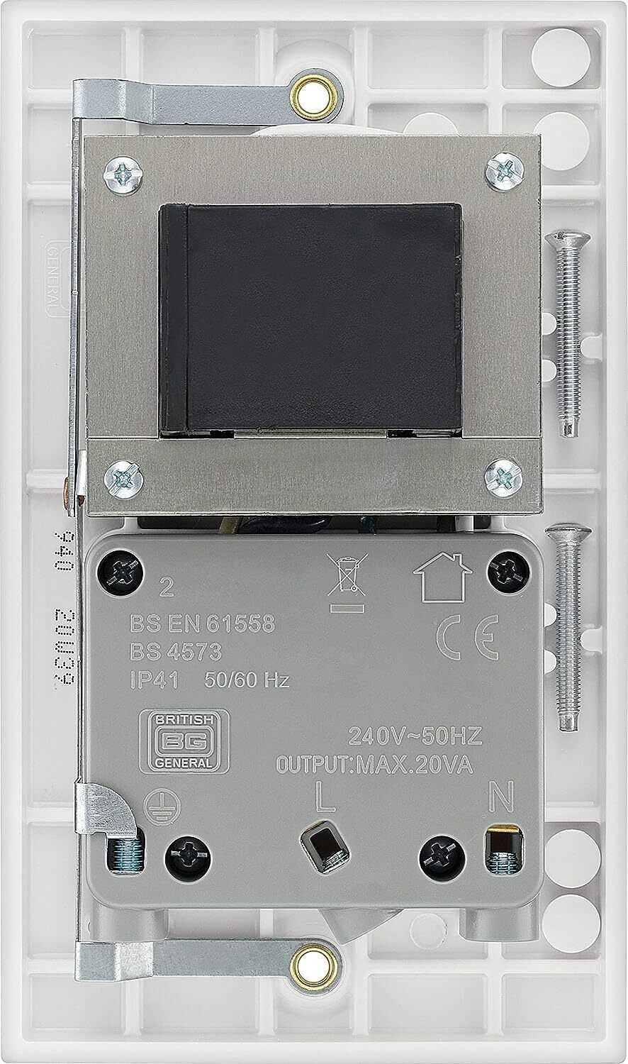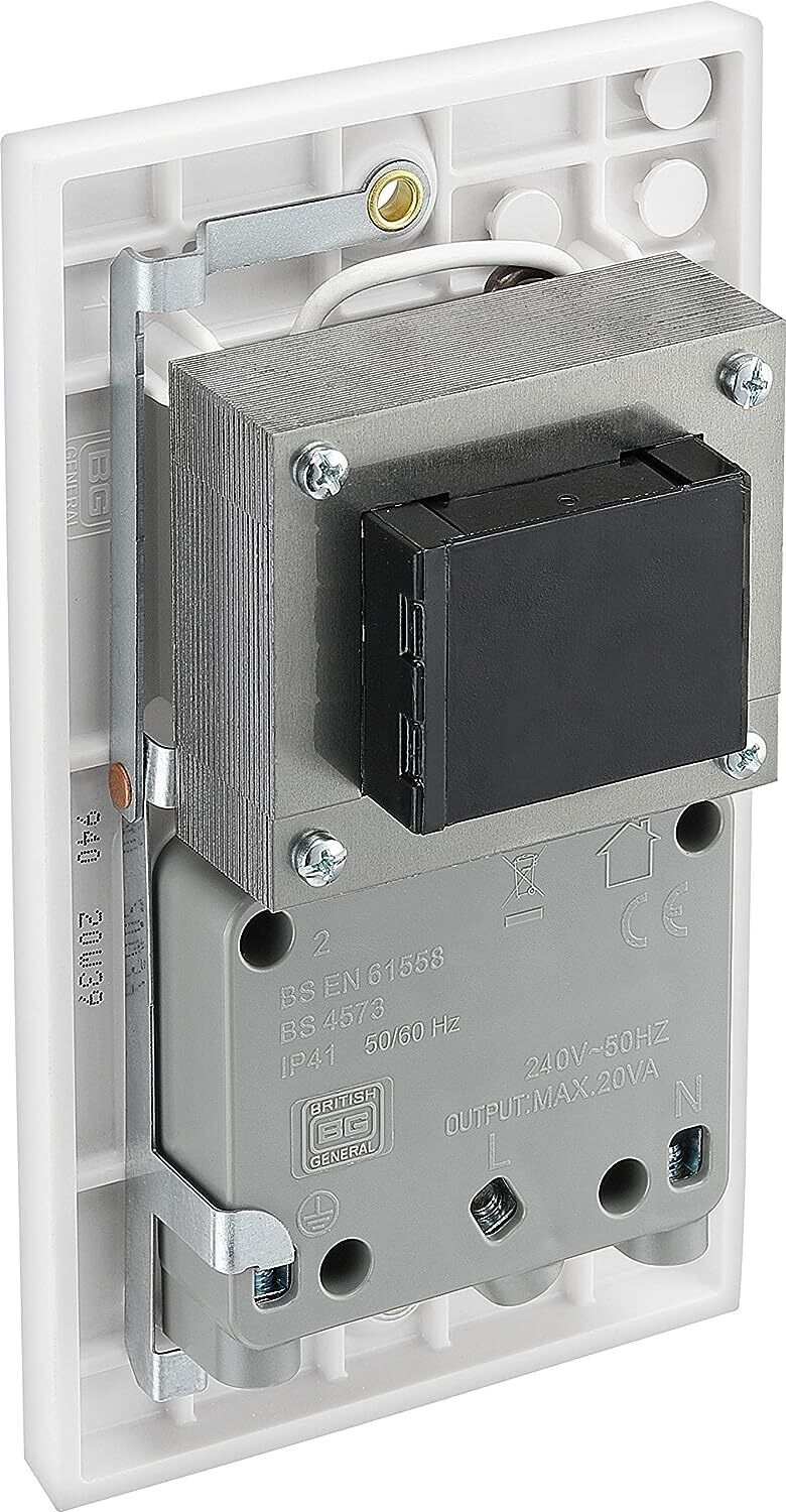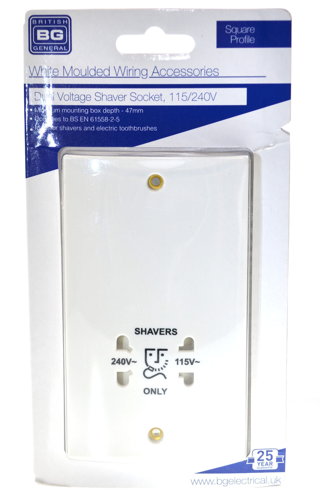British General Square Profile White Dual Voltage Shaver Socket 115/240v