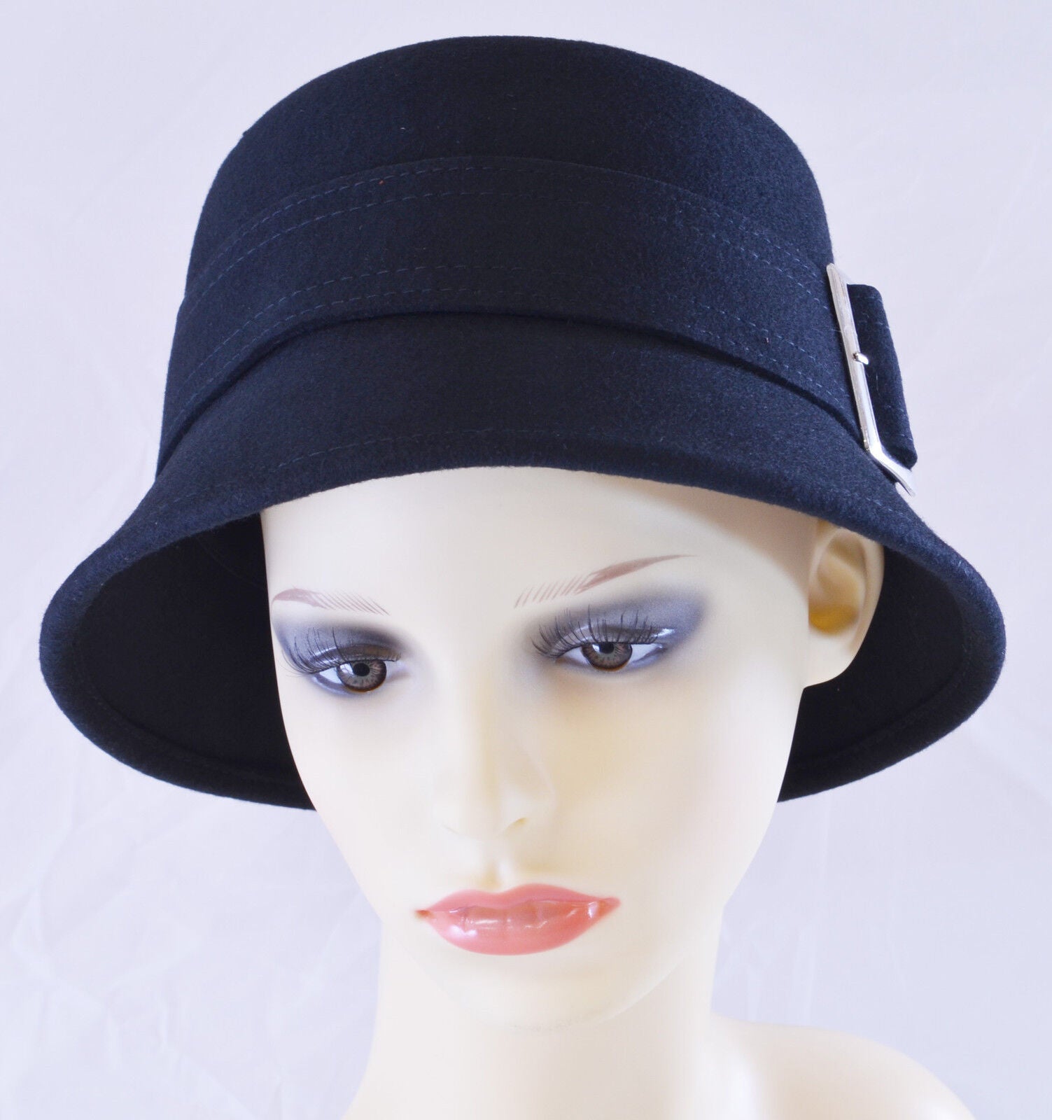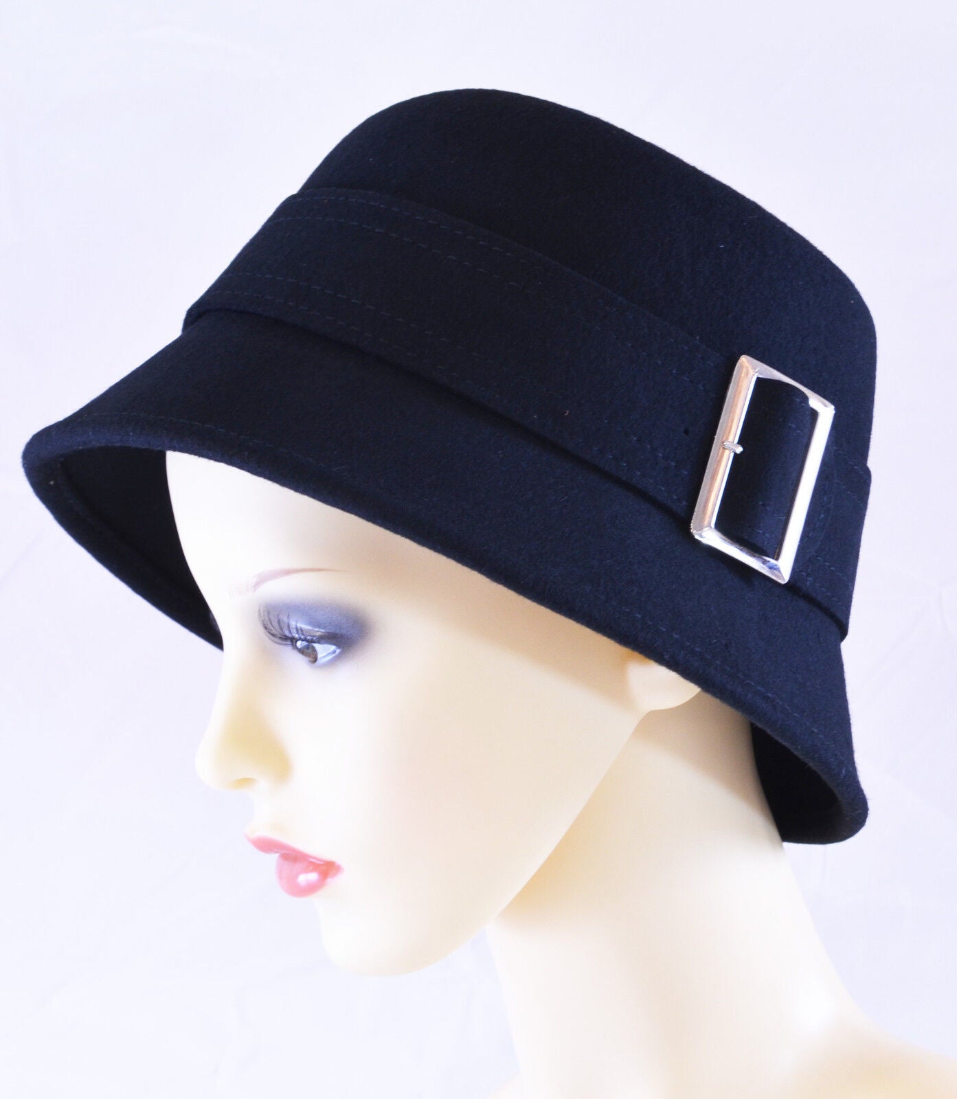 CLOCHE HAT 30's STYLE WOOL FELT DOWN BRIM PIA ROSSINI CHIARA STONE BLACK