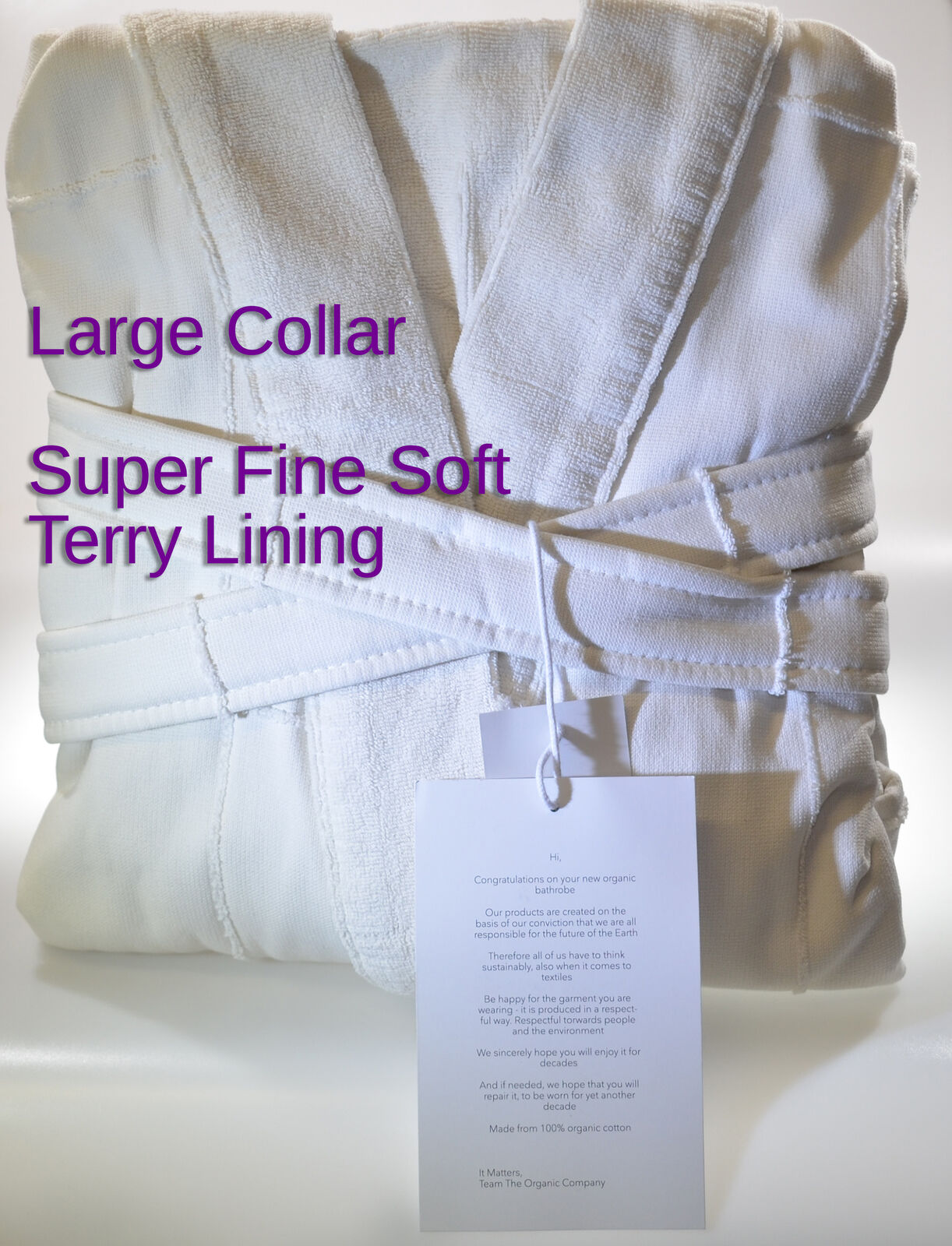 Dressing Gown Robe Calm 100% Organic Cotton Unisex Super Cosy Soft Terry/Plain