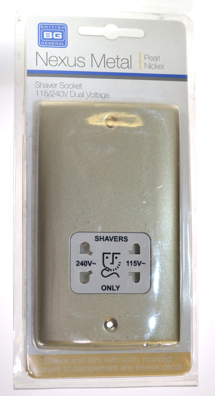 Dual Voltage Shaver Socket Brushed Nickel British General BG Nexus 115v 240v