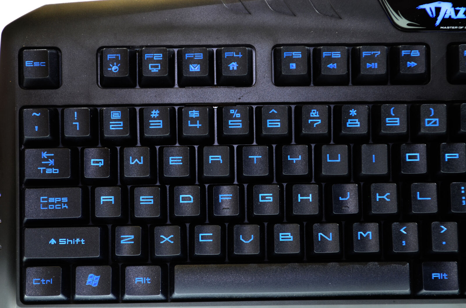 Laser-crafted keycaps with fadeless blue engraved symbols