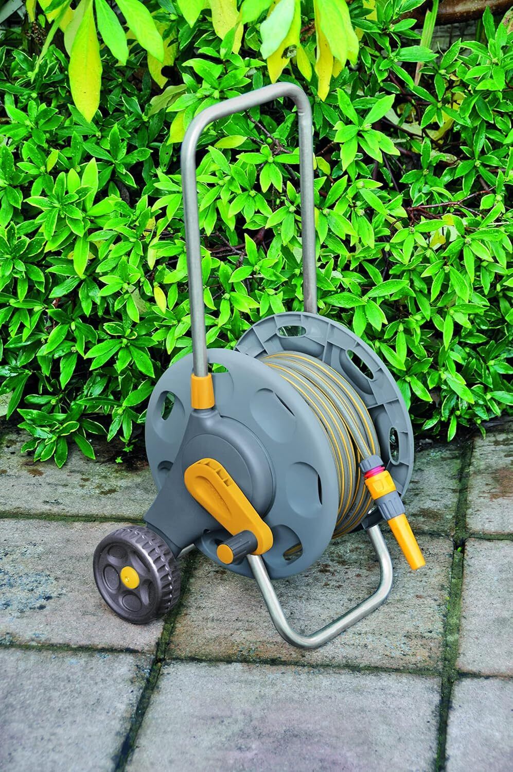 - The product comprises 20m of quality Hozelock garden hose, and a wheeled cart which can take up to 45m of hose, if you out grow the hose supplied! In addition you get a selection of connectors and adapters for easy hook up.