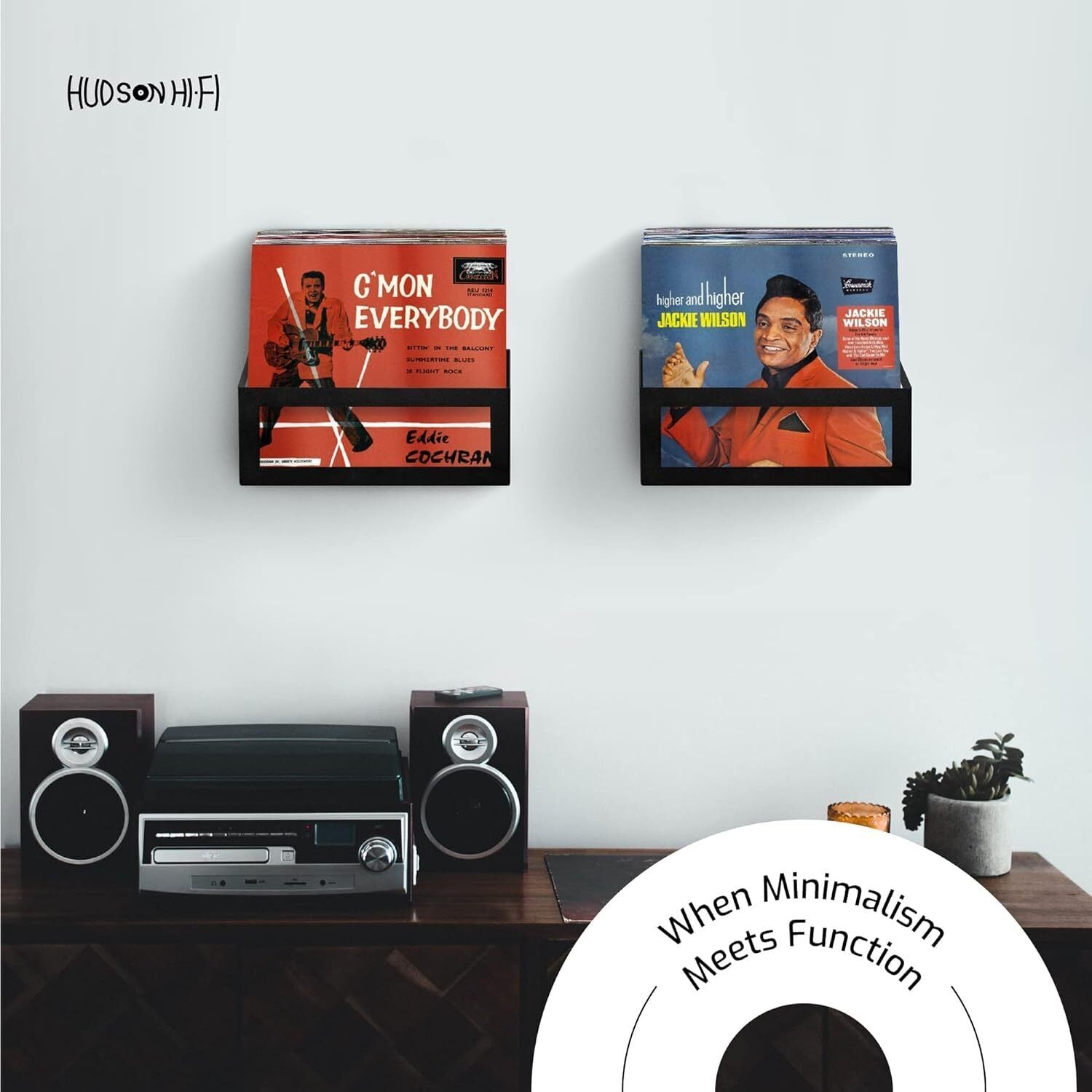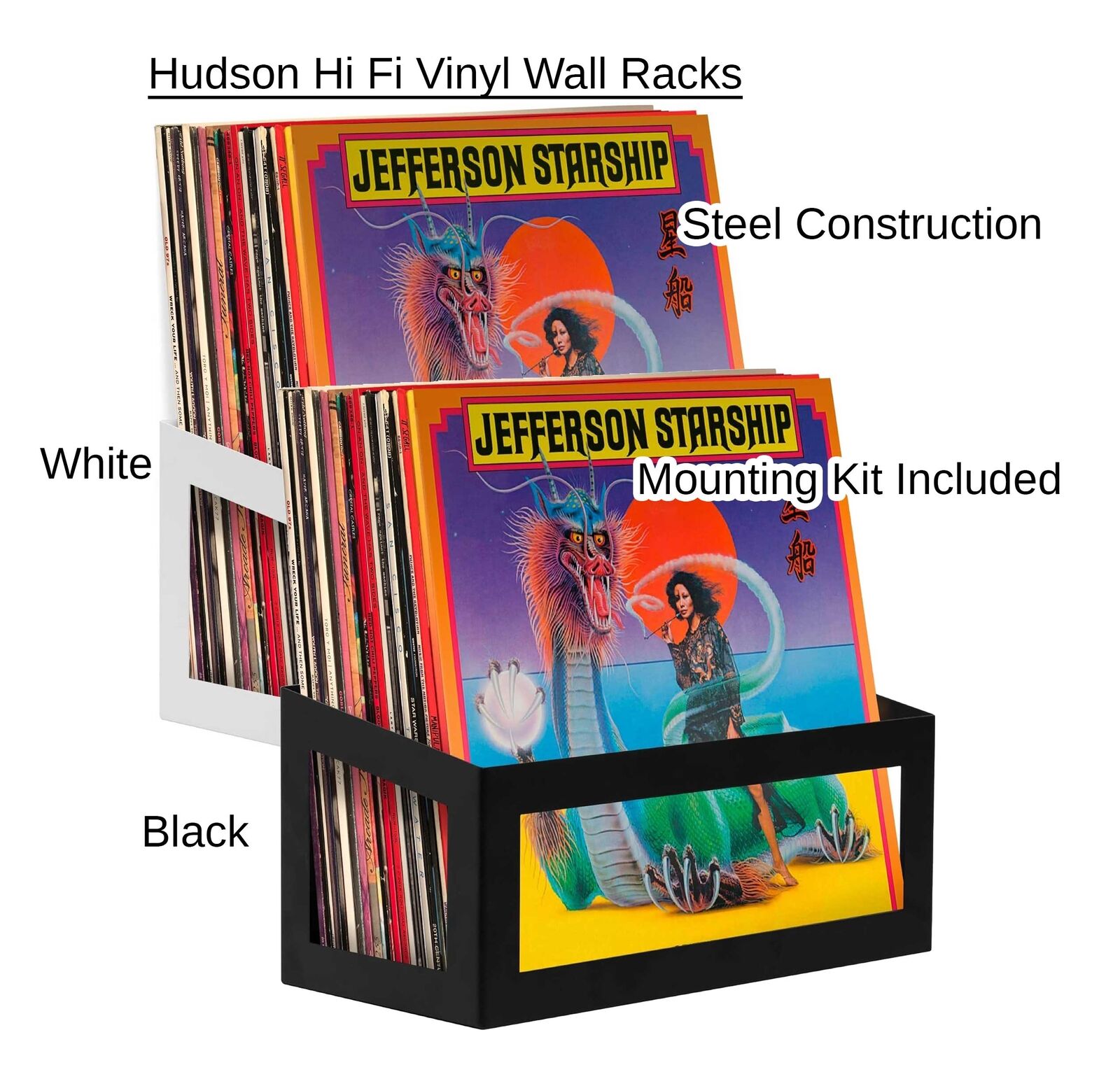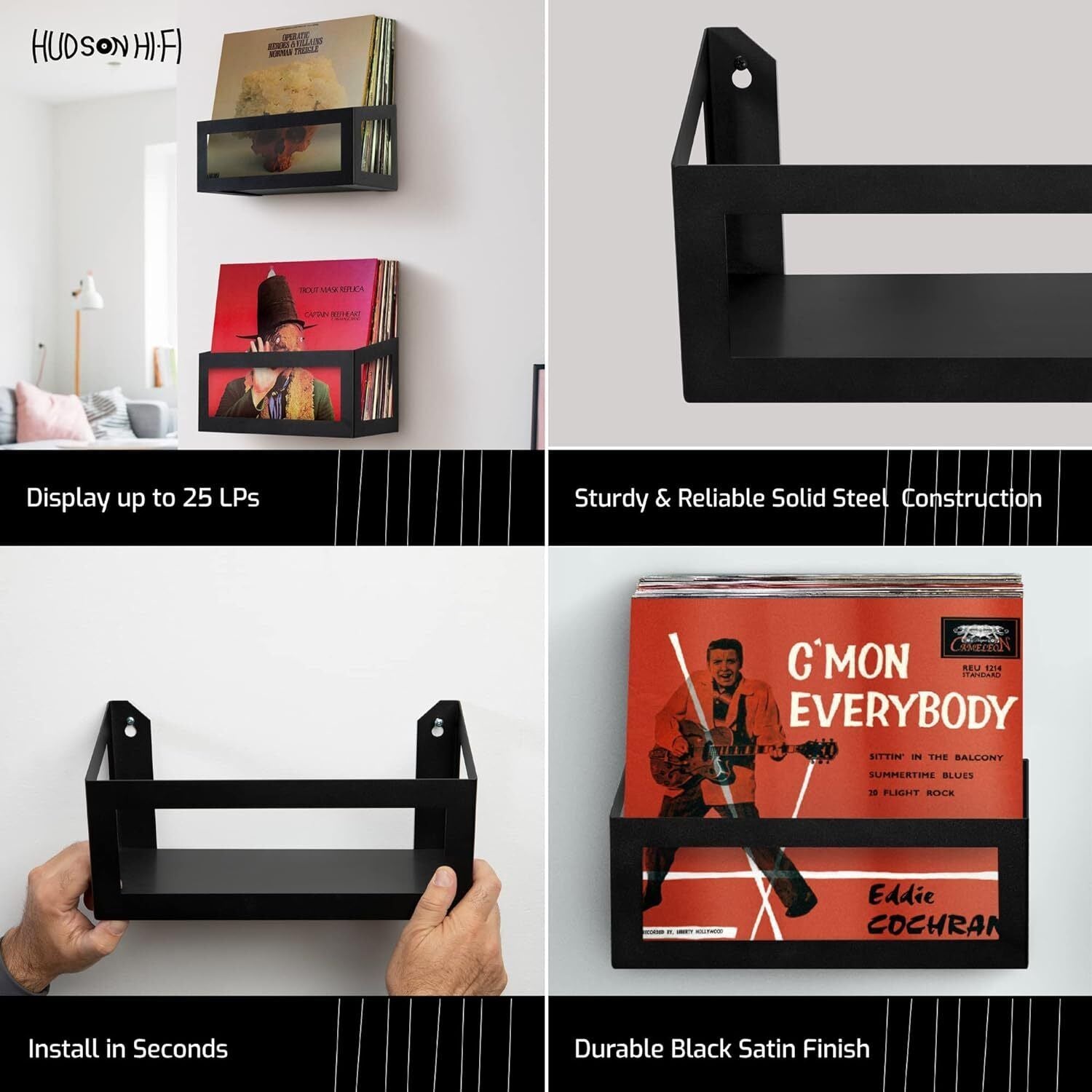 Hudson HiFi Wall Mount 12" Vinyl Record Shelf 25 Capacity Powder Coated Steel