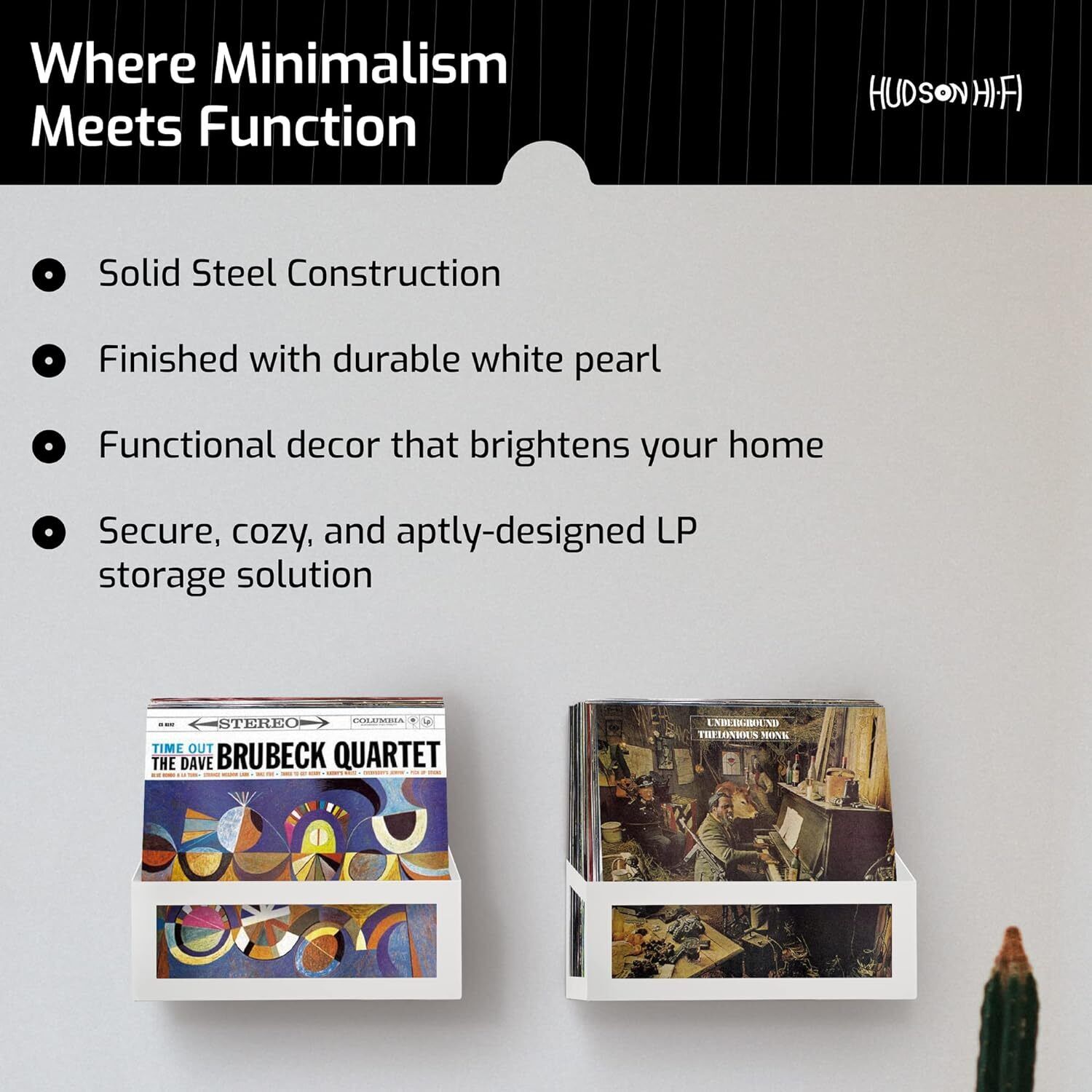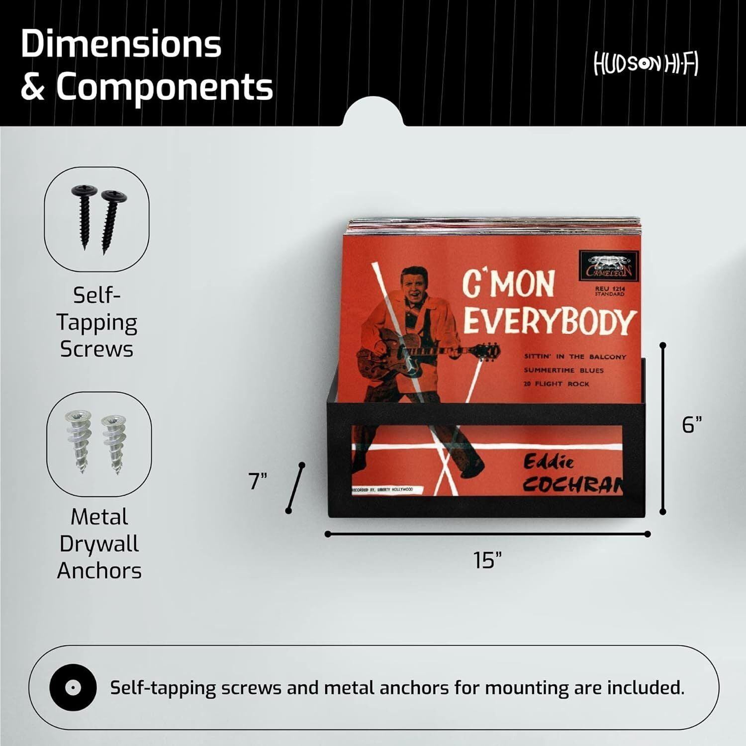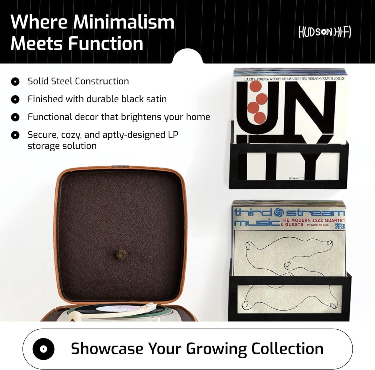 Hudson HiFi Wall Mount 12" Vinyl Record Shelf 25 Capacity Powder Coated Steel
