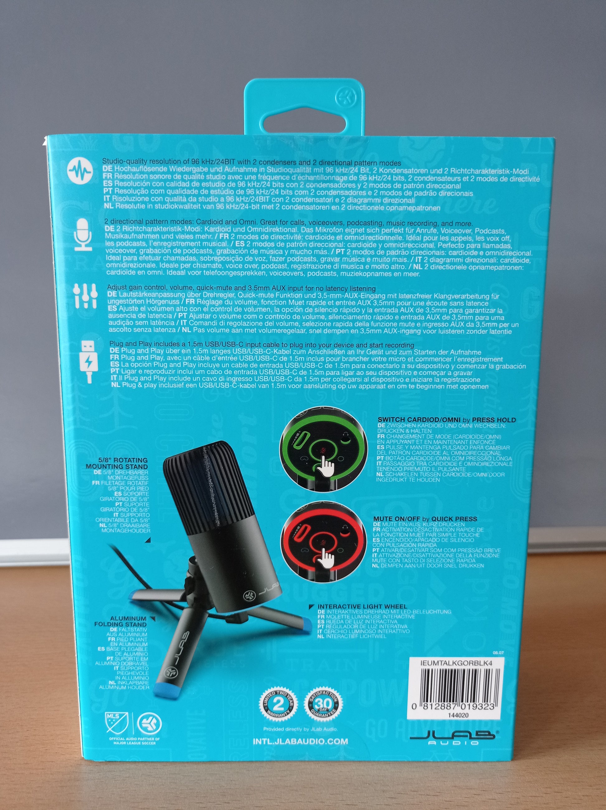 COMPACT, LIGHTWEIGHT AND PORTABLE: Meet Talk GO, a compact, lightweight and portable USB microphone with speaker and studio - quality performance. Offering a generous resolution of 96kHz/24BIT, Talk GO is great for calls, podcasts, gaming, ASMR, and voice overs using its two directional pattern modes, Cardioid and Omnidirectional