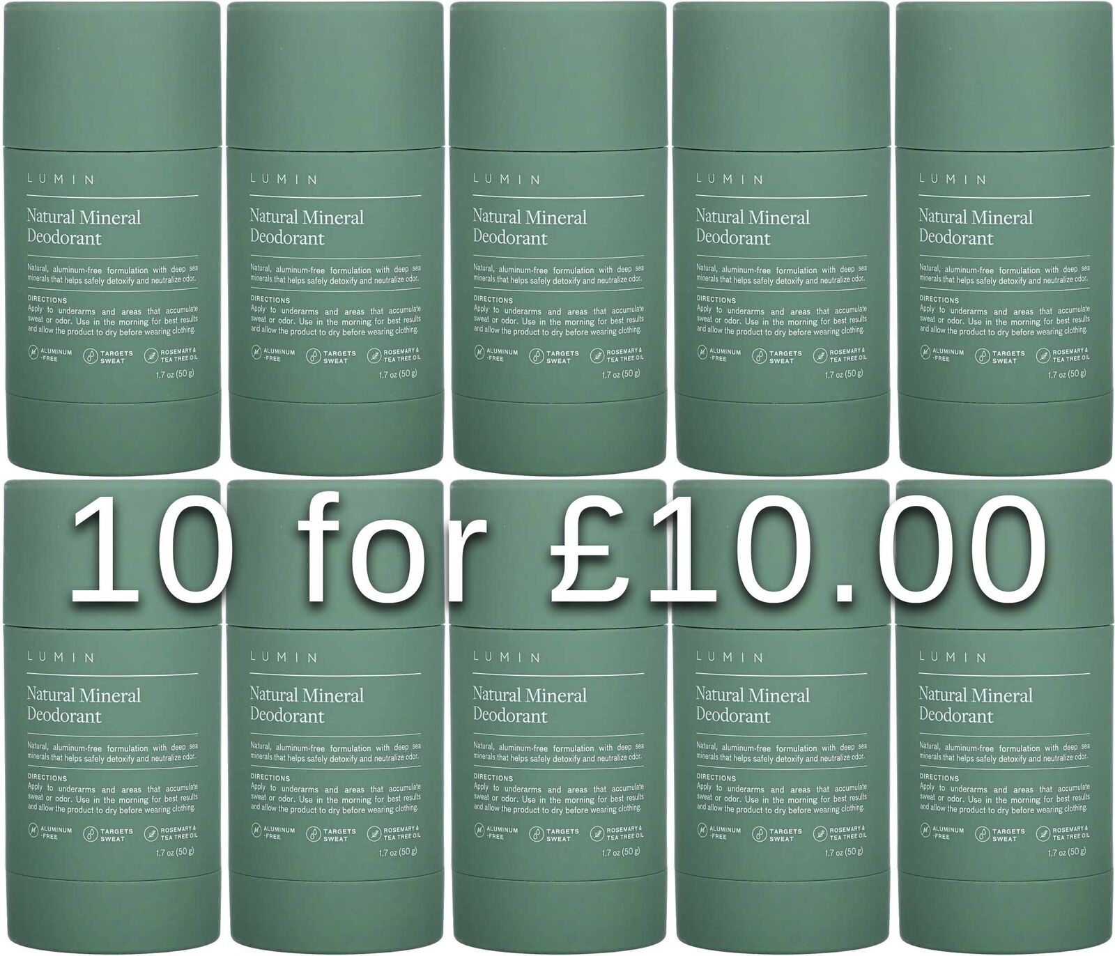 Lumin Natural Mineral Deodorant 50ml 10 For £10 Exp 09/23