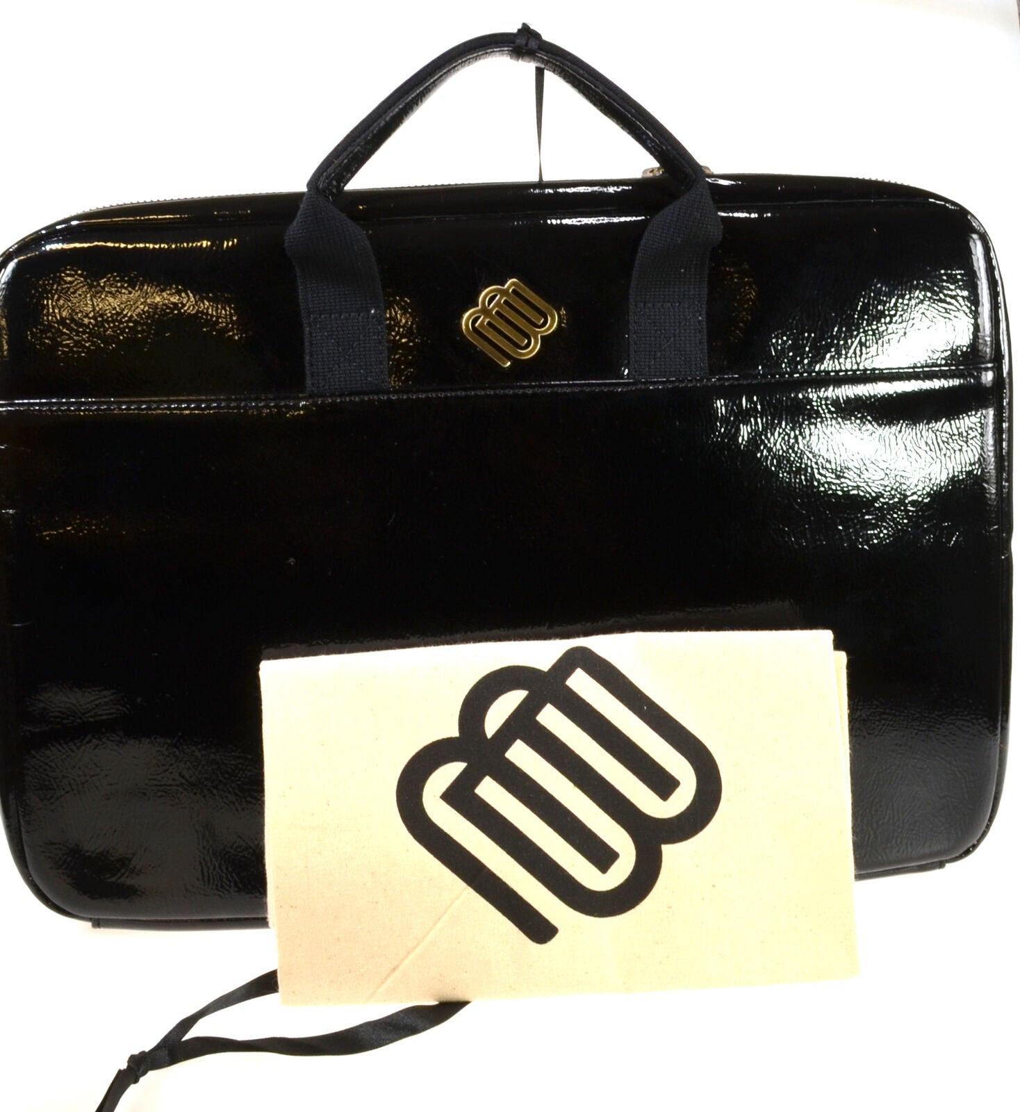 Marshall Bergman 13" Gloss Black Polished Leather Tote Laptop Sleeve