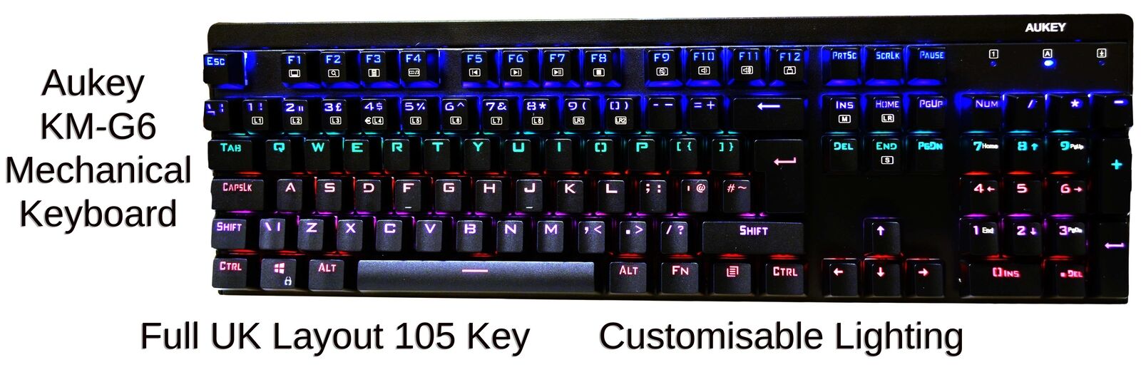 Mechanical Keyboard LED Illuminated Blue Switches Aukey KM-G6 UK Layout 105 key