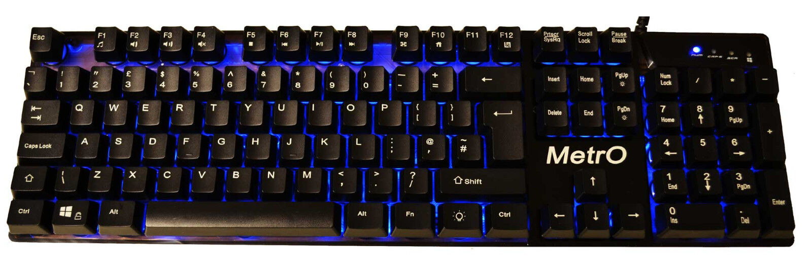 Metro Comet Backlit Wired Gaming Keyboard UK Layout Compact 3 Colour Mechanical