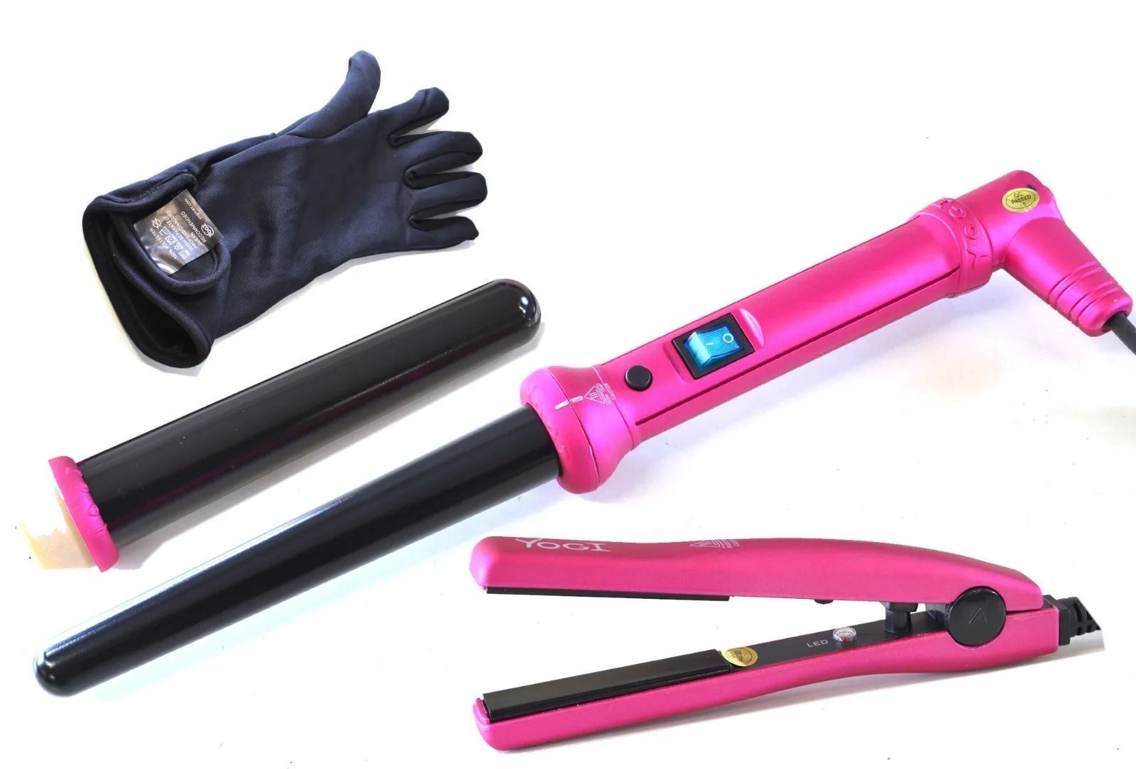 Mini Hair Straightners + Twin Barrel Curling Wand Gift Pack Yogi Metalic Pink