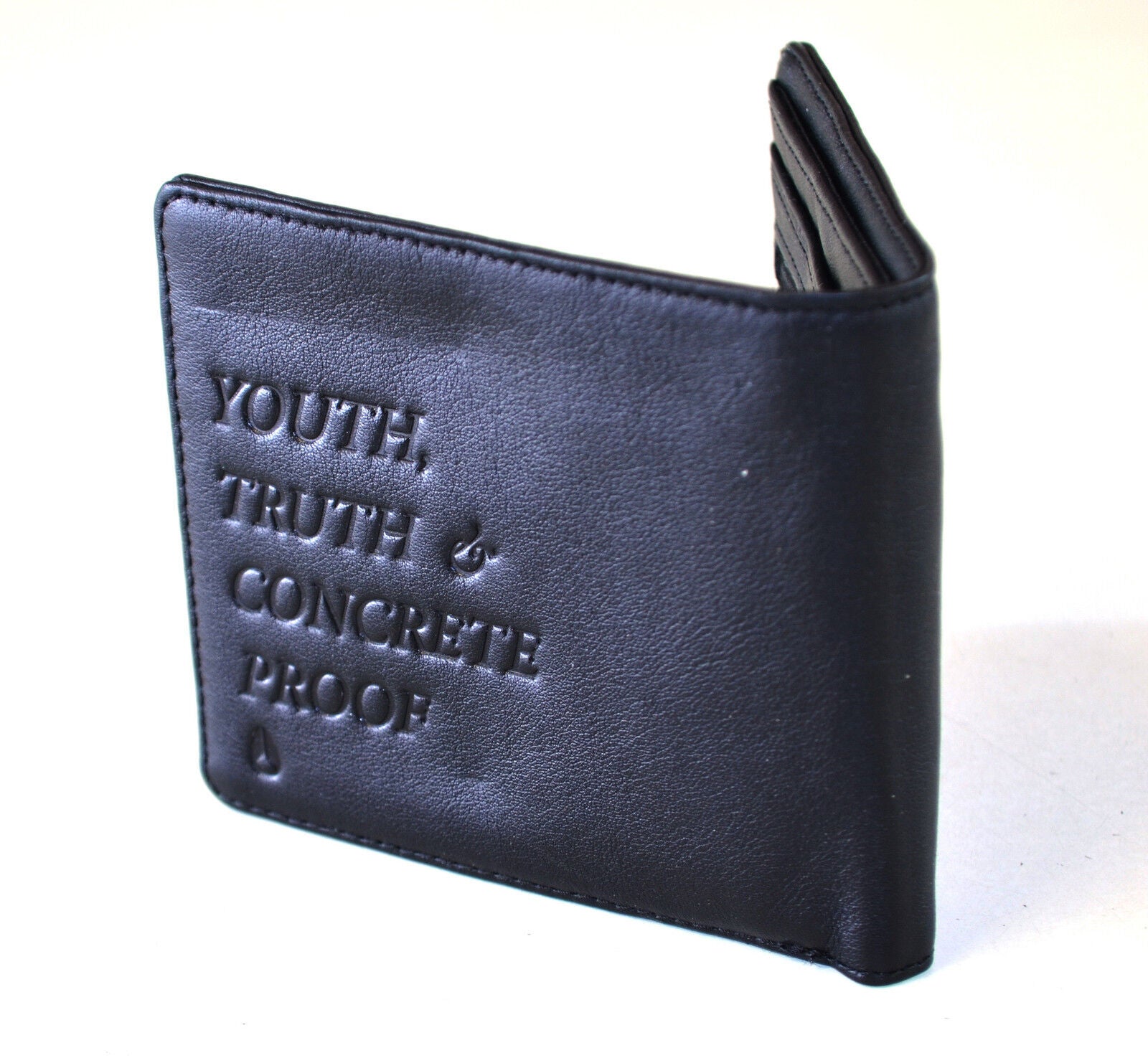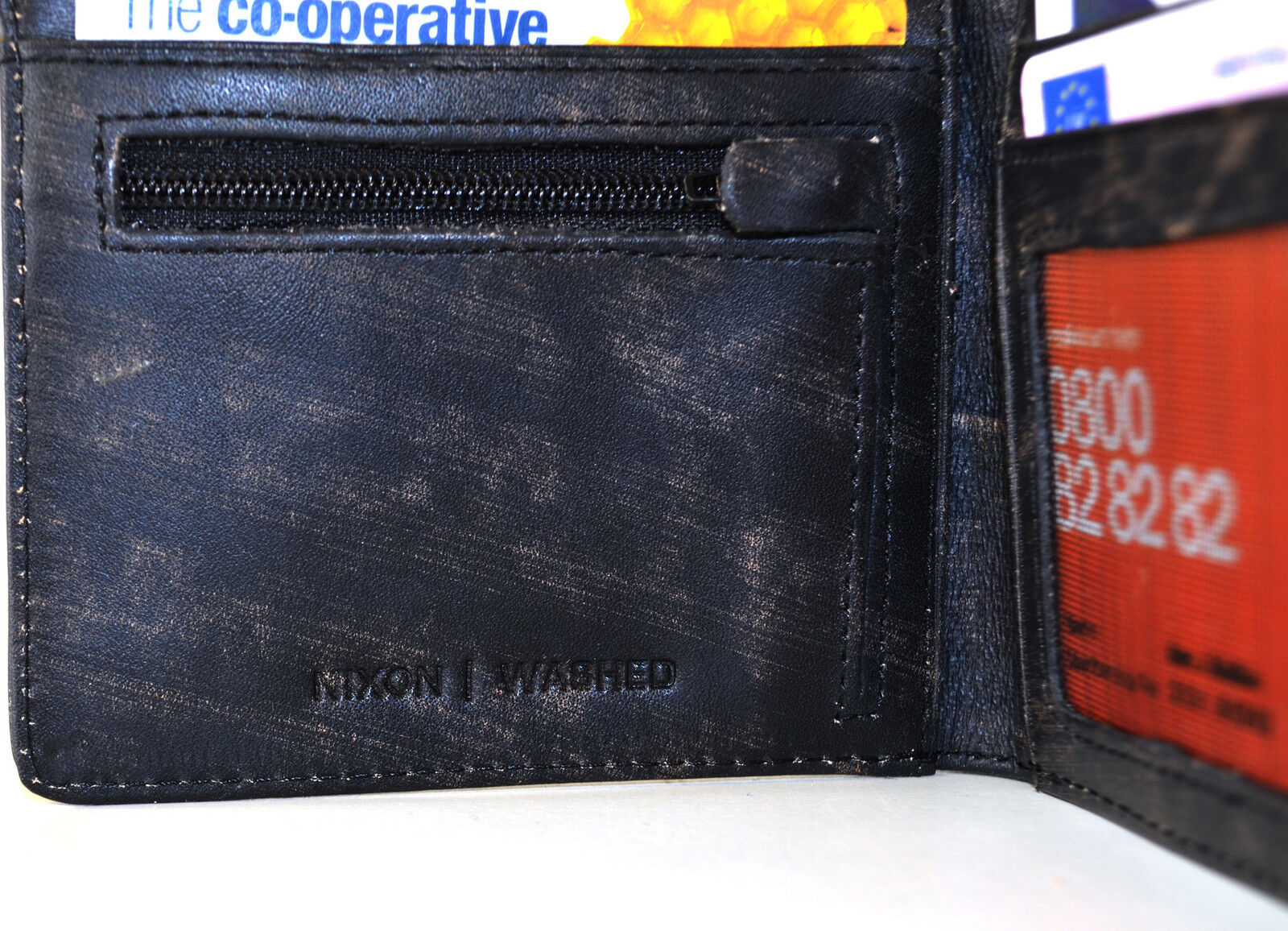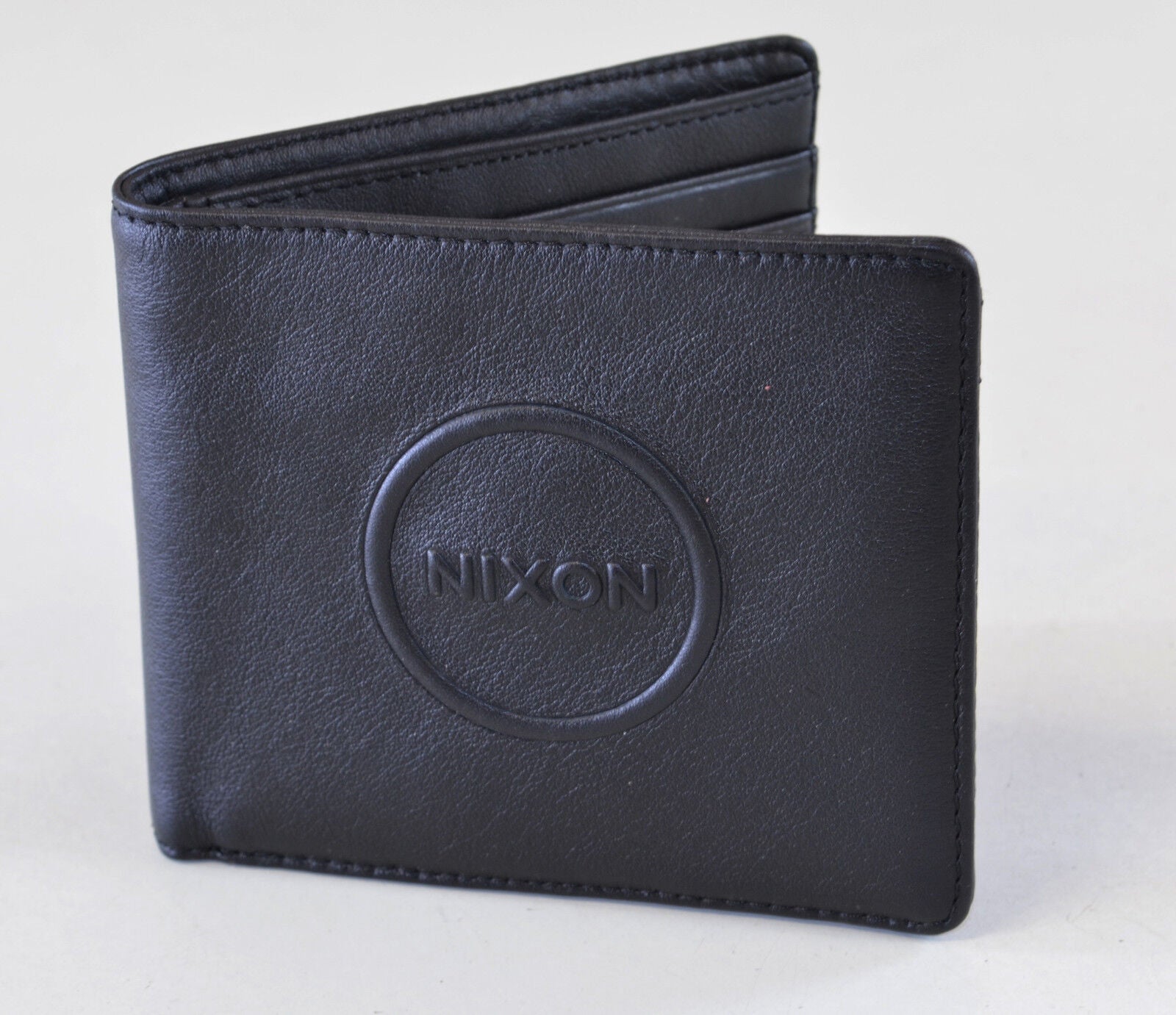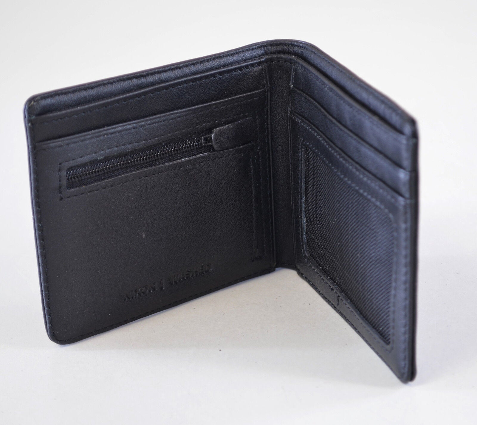 Nixon Washed Black Leather BiFold Wallet Coin Pocket Card Pocket Embossed Logo