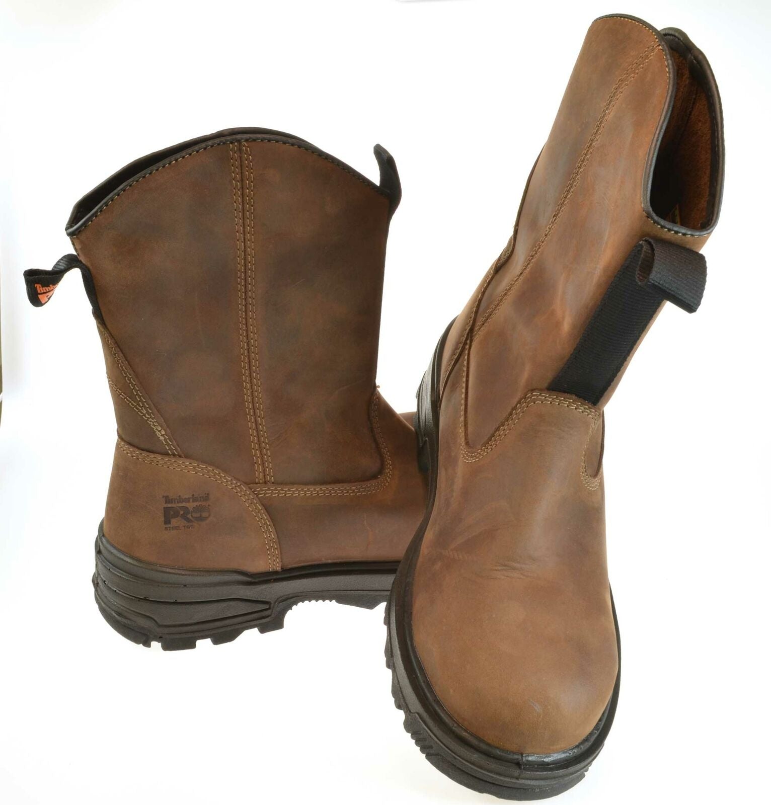 Original Timberland Pro Mortar Brown Leather Pull-On Steel Toe Safety Work Boots