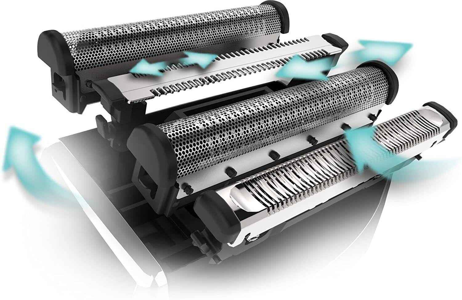 Constant contour technology: Full flexing foils and head maximising contact and comfort, plus pop-up detail trimmer