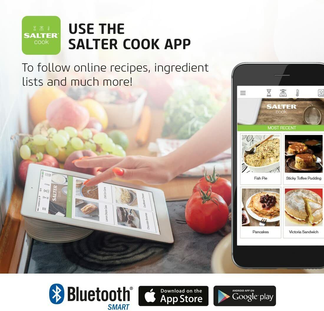 - SALTER COOK APP: Connect to the Salter Cook app and choose the recipes you want. Follow step-by-step instructions from your smartphone or tablet. Salter Cook stores all of your favourite recipes!