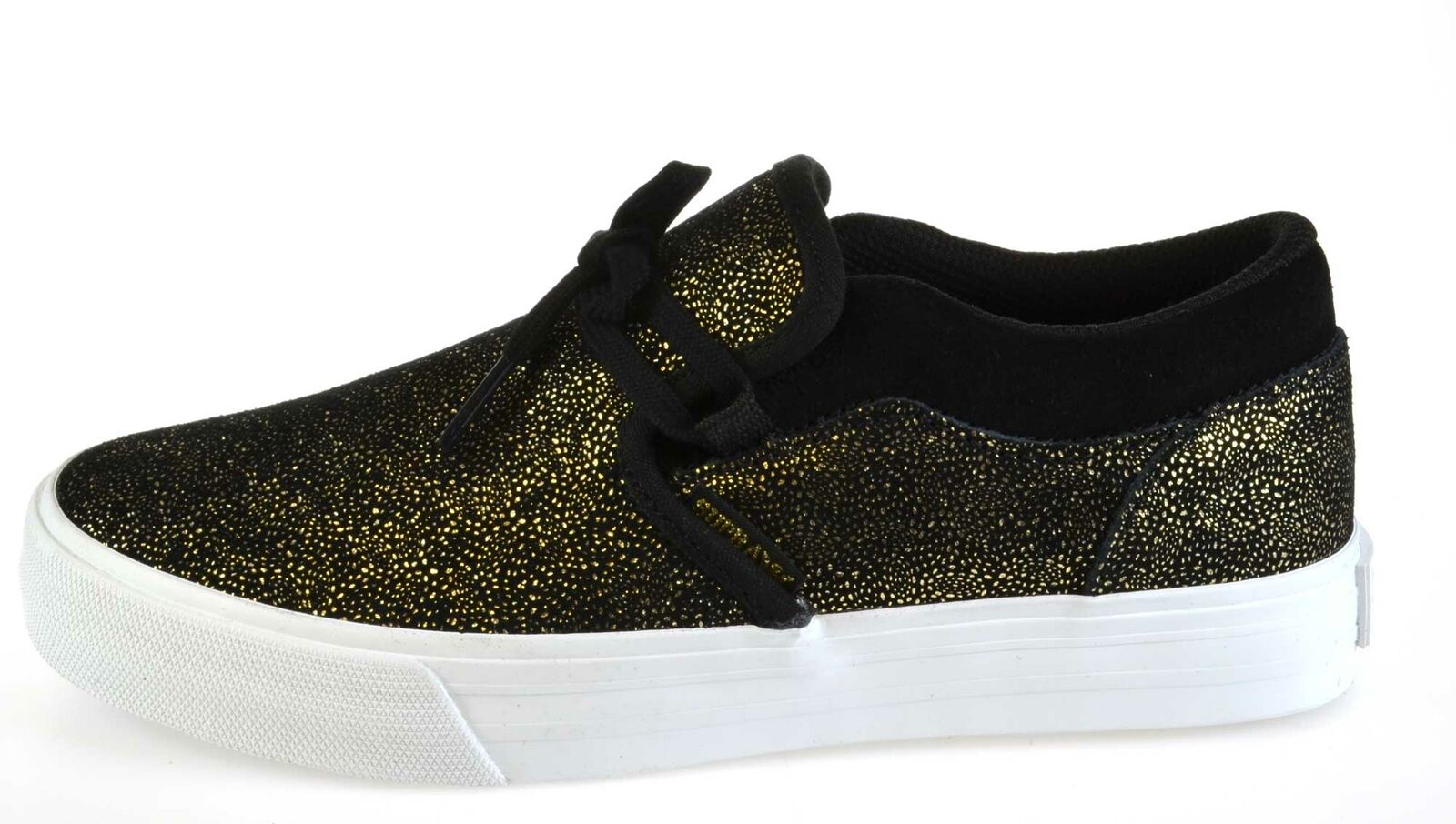 Supra Womens Cuba Black Gold White Skate Trainer Shoes
