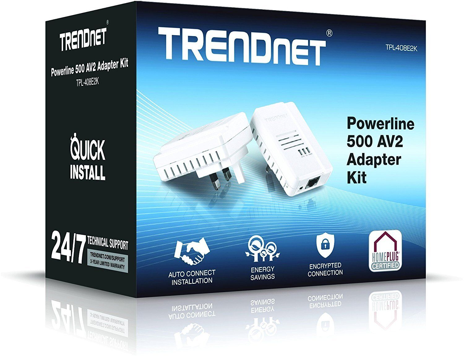 TRENDnet’s Powerline 500 AV2 Adapter Kit, model TPL-408E2K, comes with two Powerline adapters to create a high performance powerline network using an existing electrical system.