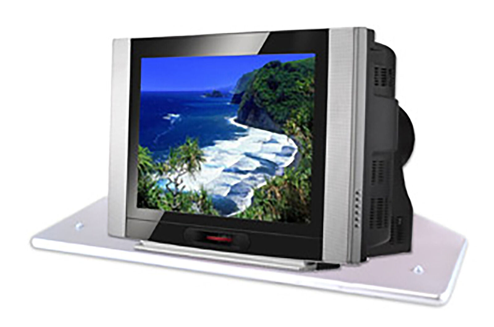The maximum size of CRT TV recommended is 21", and in all cases whatever you place on the mount or underneath do not exceed the maximum weight of 30kg.