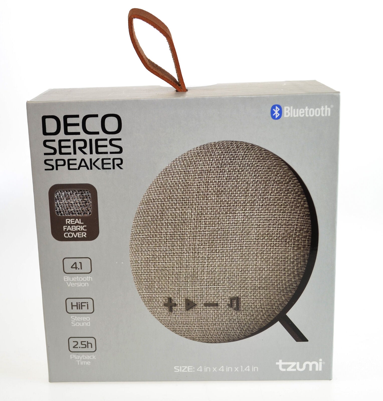 Tzumi Mini Deco Bluetooth Wireless Speaker Circular Pebble Stylish GreyFabric