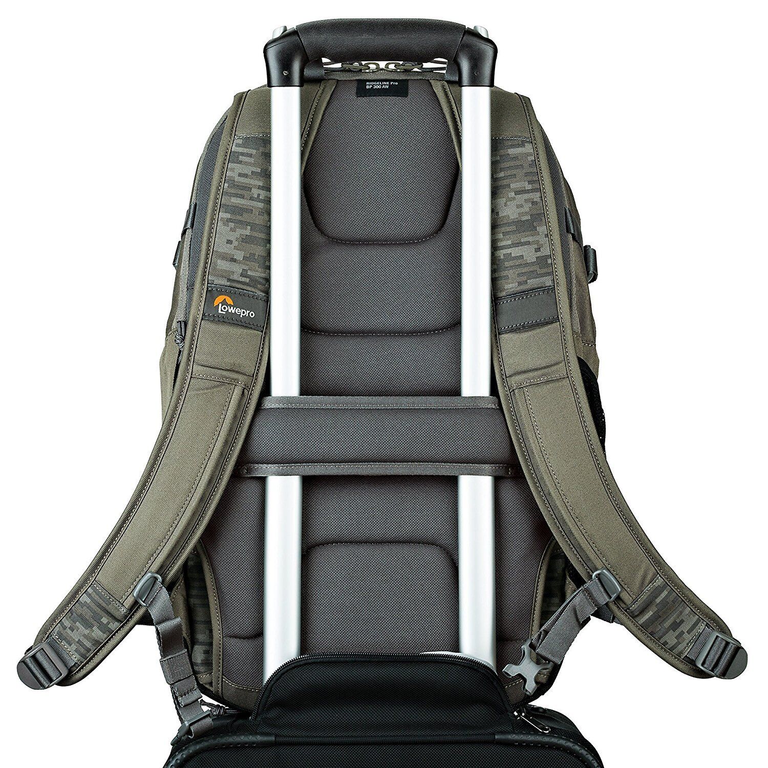 - Air-mesh back panel provides wearing comfort and includes a built-in trolley handle for easy transport with a rolling bag